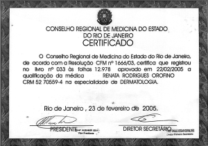 Sócia Efetiva, com Título de Especialista, pela Sociedade Brasileira de Dermatologia