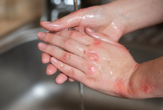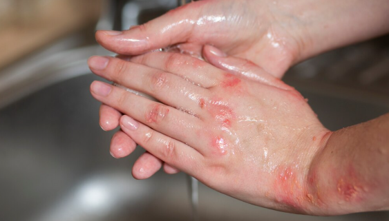 Remova roupas, joias, anéis e piercing. Os casos leves podem ser lavados com clorexidina degermante e soro fisiológico.